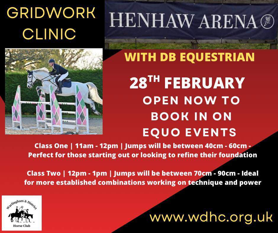 Gridwork clinic with Daniel Baddeley at Henhaw Arena. Dan’s coaching focuses on technical precision in a supportive environment, allowing you and your horse to improve rhythm, balance and confidence over fences. We are offering two sessions tailored to different experience levels. In both classes, the heights are a guide and riders only need to jump to their own confidence level.